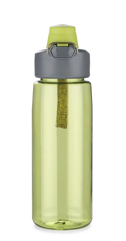 Bidon SHOT o sportowym wyglądzie wyposażony jest w blokadę zamknięcia, która pomaga zapewnić szczelność bidonu i zabezpiecza przed przypadkowym wylaniem się płynu. Bidon został wykonany z bezpiecznego tworzywa PCTG, posiada certyfikat do kontaktu z żywnością. Pojemność 750 ml.