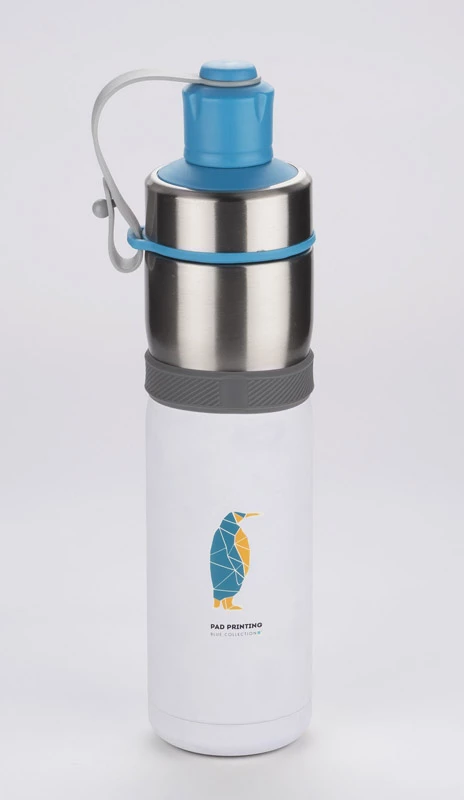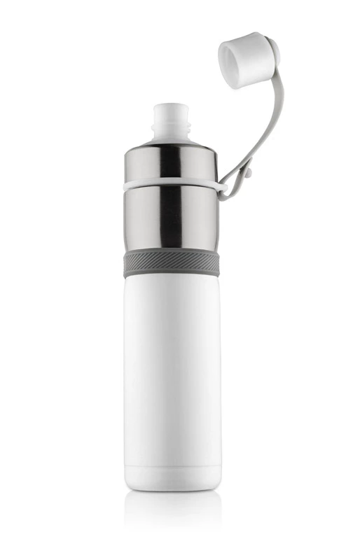 Sportowy bidon z próżnią przyda się na letnie wycieczki rowerowe bądź treningi na świeżym powietrzu. Dzięki zastosowanej do izolacji bidonu próżni utrzymuje on temperaturę napoju zarówno ciepłego jak i zimnego. Wygodne zamknięcie umocowane na pasku jest praktycznym rozwiązaniem podczas uprawiania sportu. Bidon wykonany ze stali nierdzewnej o podwyższonym standardzie.