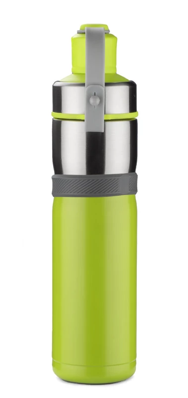 Sportowy bidon z próżnią przyda się na letnie wycieczki rowerowe bądź treningi na świeżym powietrzu. Dzięki zastosowanej do izolacji bidonu próżni utrzymuje on temperaturę napoju zarówno ciepłego jak i zimnego. Wygodne zamknięcie umocowane na pasku jest praktycznym rozwiązaniem podczas uprawiania sportu. Bidon wykonany ze stali nierdzewnej o podwyższonym standardzie.
