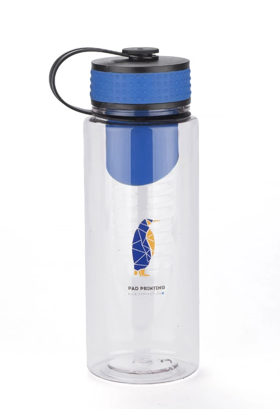 Bidon posiadający wkład na owoce. Pojemność 800 ml. Wykonany z tritanu. Zapakowany w woreczek biodegradowalny.