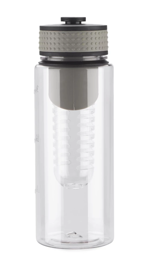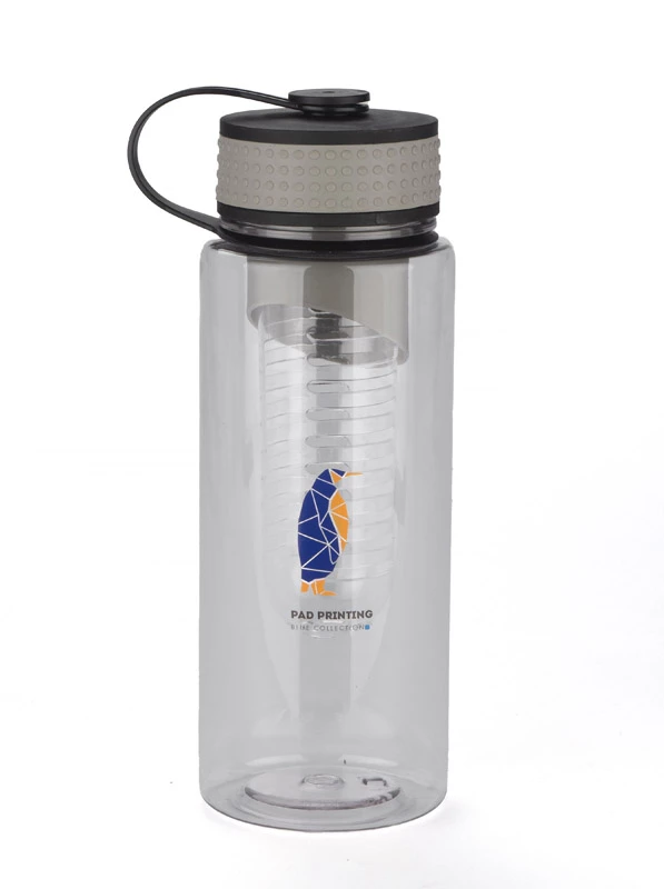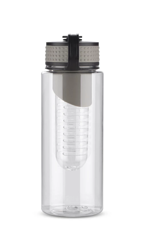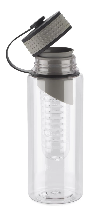 Bidon posiadający wkład na owoce. Pojemność 800 ml. Wykonany z tritanu. Zapakowany w woreczek biodegradowalny.