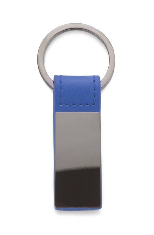 Elegancki dwustronny brelok wykonany z materiału skóropodobnego PU i metalu w kolorze grafitowym. Logo wygrawerujemy na metalowej blaszce.