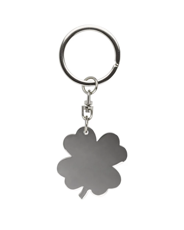 Brelok koniczynka czterolistna na szczęście dla wszystkich, którzy lubią mieć zawsze przy sobie gadżet na odstraszenie nieszczęśliwych zdarzeń. Brelok wykonany z chromowanego metalu. Logo grawerujemy na koniczynce.