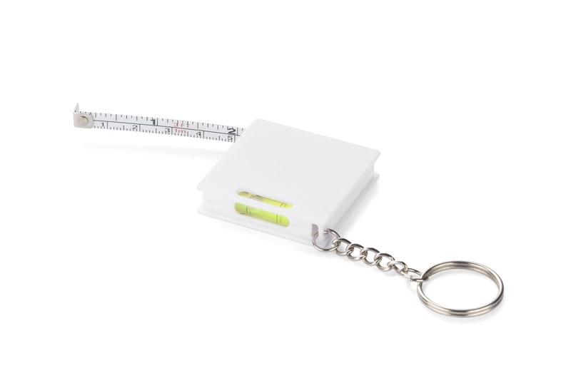Breloczek do kluczy z miarką o długości 1 m i poziomicą.