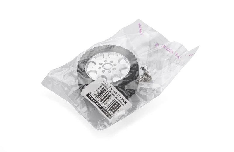Breloczek w kształcie opony, z miarką o długości 1 metra. Wykonany z tworzywa, nadruk wykonujemy na rewersie.