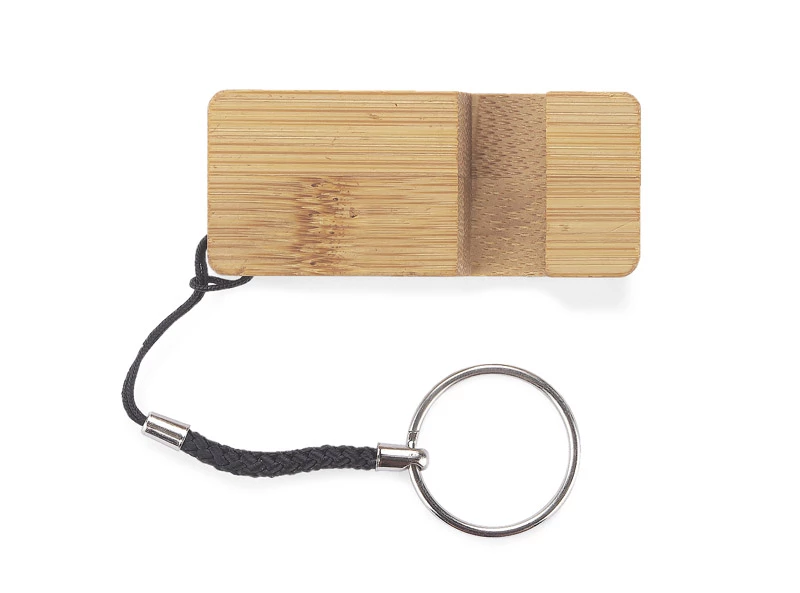 PENDE to praktyczny bambusowy brelok mogący służyć także jako stojak do telefonu.