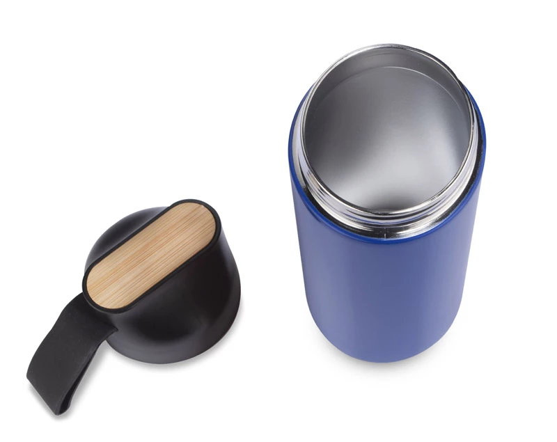 Butelka termiczna ELSA wykonana jest ze stali nierdzewnej o podwyższonym standardzie. Posiada próżnię między ściankami, dzięki czemu utrzymuje temperaturę napoju około 10 godzin. Zakrętka z tworzywa posiada ozdobny element z naturalnego bambusa i silikonowy uchwyt.
