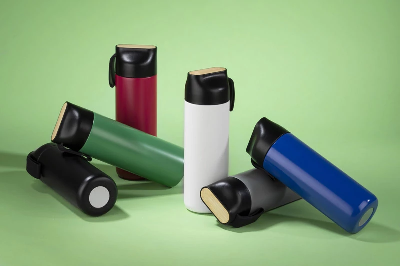 Butelka termiczna ELSA wykonana jest ze stali nierdzewnej o podwyższonym standardzie. Posiada próżnię między ściankami, dzięki czemu utrzymuje temperaturę napoju około 10 godzin. Zakrętka z tworzywa posiada ozdobny element z naturalnego bambusa i silikonowy uchwyt.