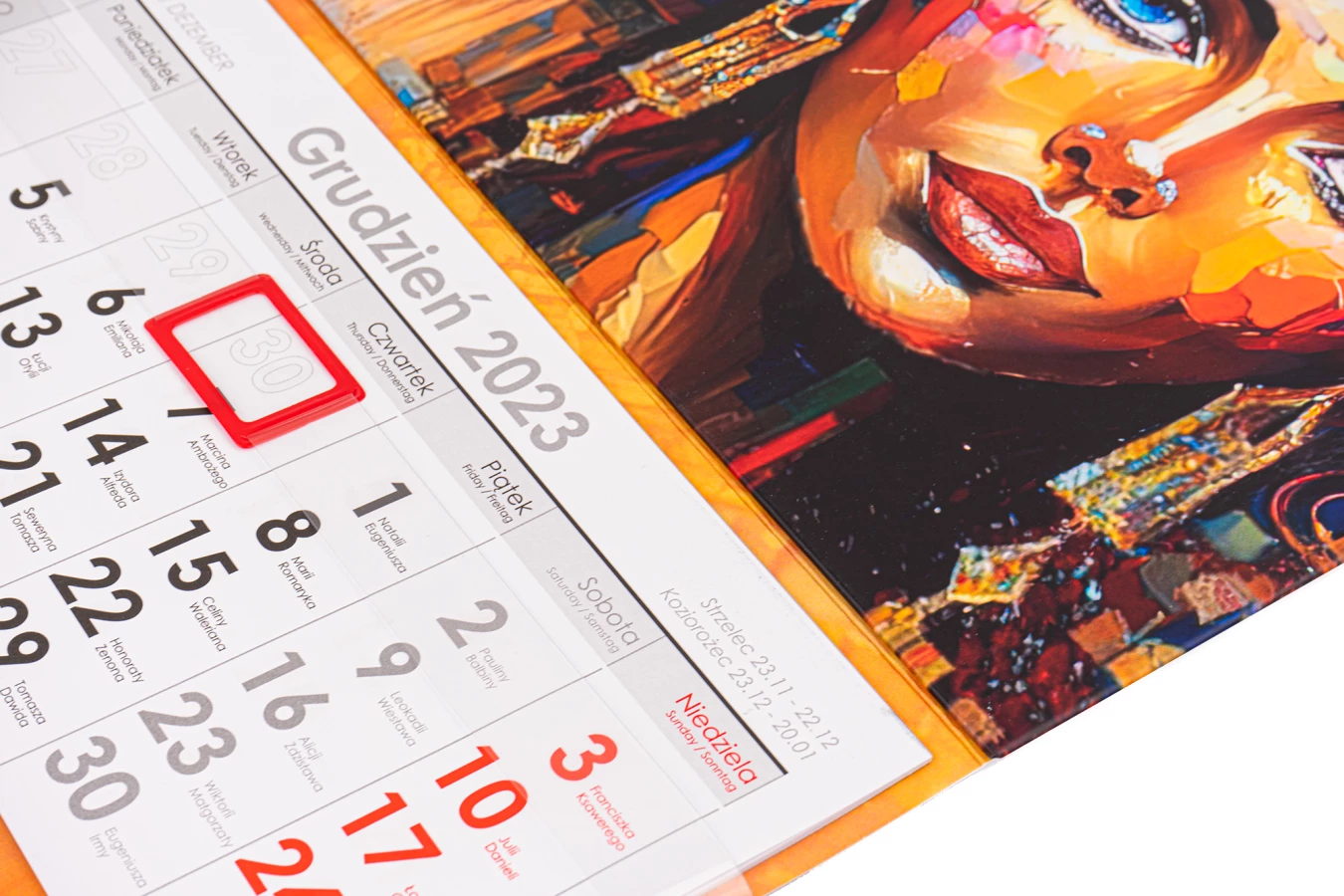 Inne: miejsce na reklamę pomiędzy kalendariami