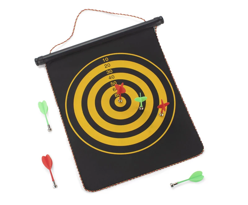 Dart magnetyczny to idealna propozycja dla fanów gry w dart. Wykonany jest z materiału magnetycznego dzięki temu rzutki z łatwością przykleją się do tarczy. Sprawia to, że gra jest całkowicie bezpieczna. Tarcza jest dwustronna. Posiada sznureczek za pomocą którego można powiesić ją w dowolnym miejscu. Zapakowany w czarną tubę wraz z sześcioma rzutkami.