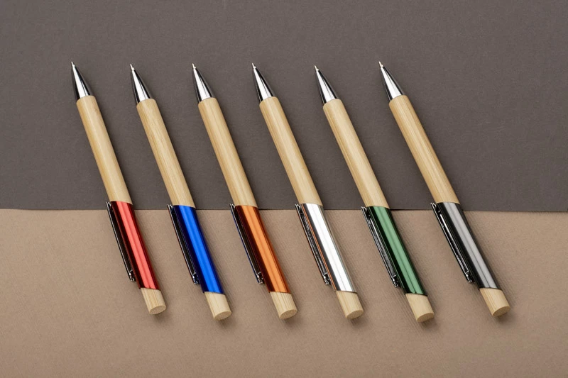 BALIS to unikalny długopis bambusowy z wyrazistymi, kolorowymi akcentami o metalicznym połysku, które dodają mu charakteru. Klips oraz wykończenia w srebrnym kolorze podkreślają elegancję długopisu, a mechanizm wciskany zwiększa wygodę użytkowania. Wykonany z naturalnego bambusa, stanowi stylowy i ekologiczny wybór.