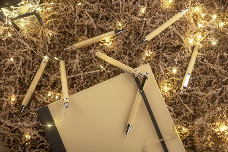 BUSU to długopis wykonany z wytrzymałego i lekkiego bambusa, który nadaje gadżetowi naturalnego uroku i ciepła. Posiada elegancki metalowy klip. Długopis BUSU to więcej niż tylko długopis - to połączenie funkcjonalności z naturalnym pięknem bambusa, które sprawia, że każde pisanie staje się wyjątkowym doświadczeniem.Idealnie komponuje się z ołówkiem automatycznym BANO, tworząc stylowy zestaw piśmienniczy.