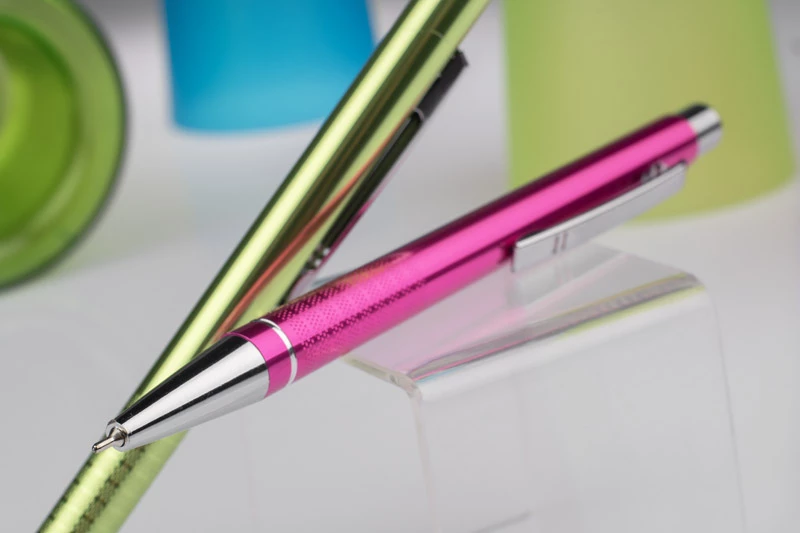 Długopis BONITO to elegancki metalowy długopis w metalicznych kolorach z chromowanymi wykończeniami. Wykonany z wysokiej jakości aluminium, korpus długopisu ozdobiony jest srebrnym ringiem oraz paskami o delikatnie chropowatej strukturze. Długopis wyposażony jest w wkład z tuszem półżelowym w kolorze czarnym o grubości 0,7 mm.