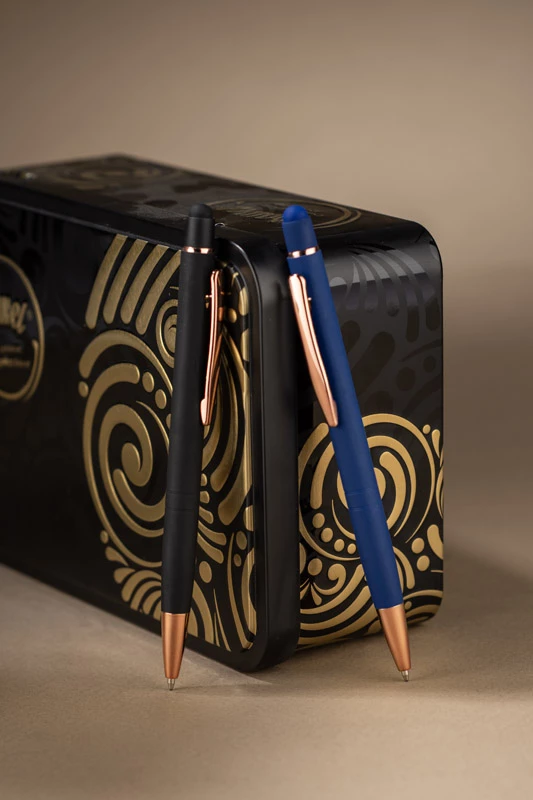 Aluminiowy długopis DIORI z przyjemnym w dotyku wykończeniem soft touch. Estetyczne metalowe wykończenia dodają uroku i elegancji. Wkład w kolorze niebieskim.