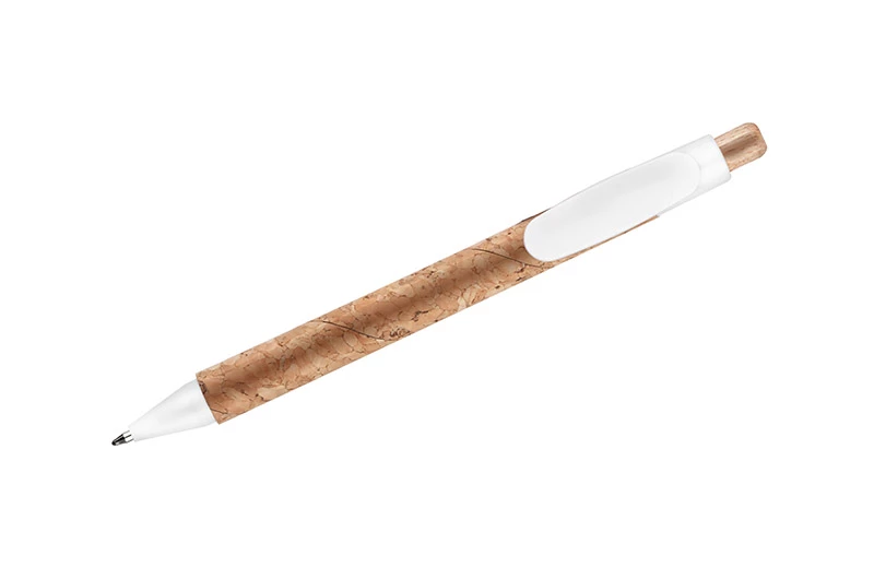Długopis KORTE nawiązuje swoim wyglądem do idei recyclingu. Korpus został wykonany z naturalnego korka, a przycisk z drewna. Wykończenia z tworzywa sztucznego w żywych kolorach dodają mu uroku. Wkład w kolorze niebieskim.