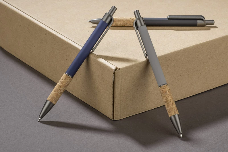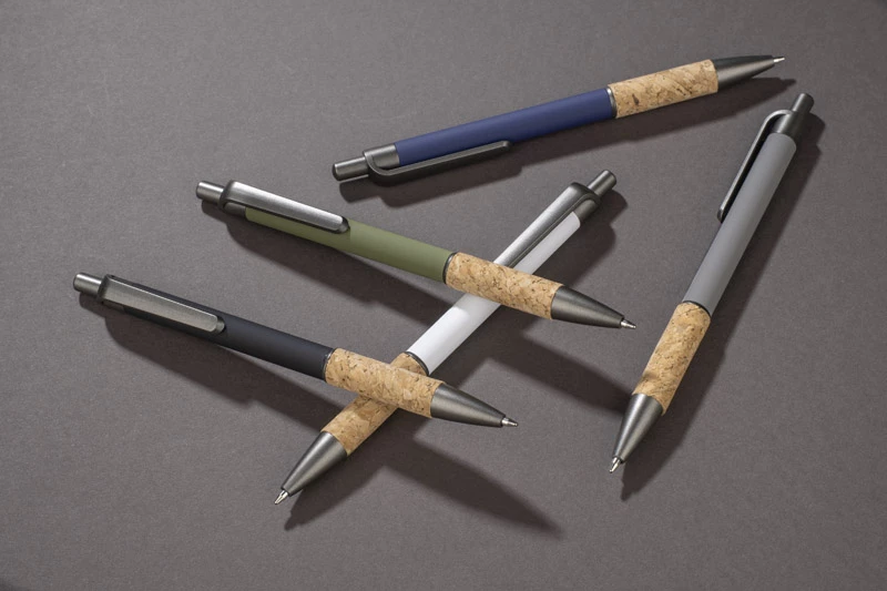 Długopis KUBOD to klasyczny model o prostym, eleganckim kształcie, idealny do znakowania. Aluminiowy korpus pokryty został matową powłoką soft touch, która zwiększa komfort użytkowania. Naturalny korek w części chwytnej przyciąga uwagę i wyróżnia produkt na tle standardowych modeli. Metaliczne akcenty z tworzywa dodają całości nowoczesnego charakteru. Długopis posiada mechanizm automatyczny i jest wyposażony w niebieski wkład typu X20 (wymienny, niedostępny w naszej ofercie).