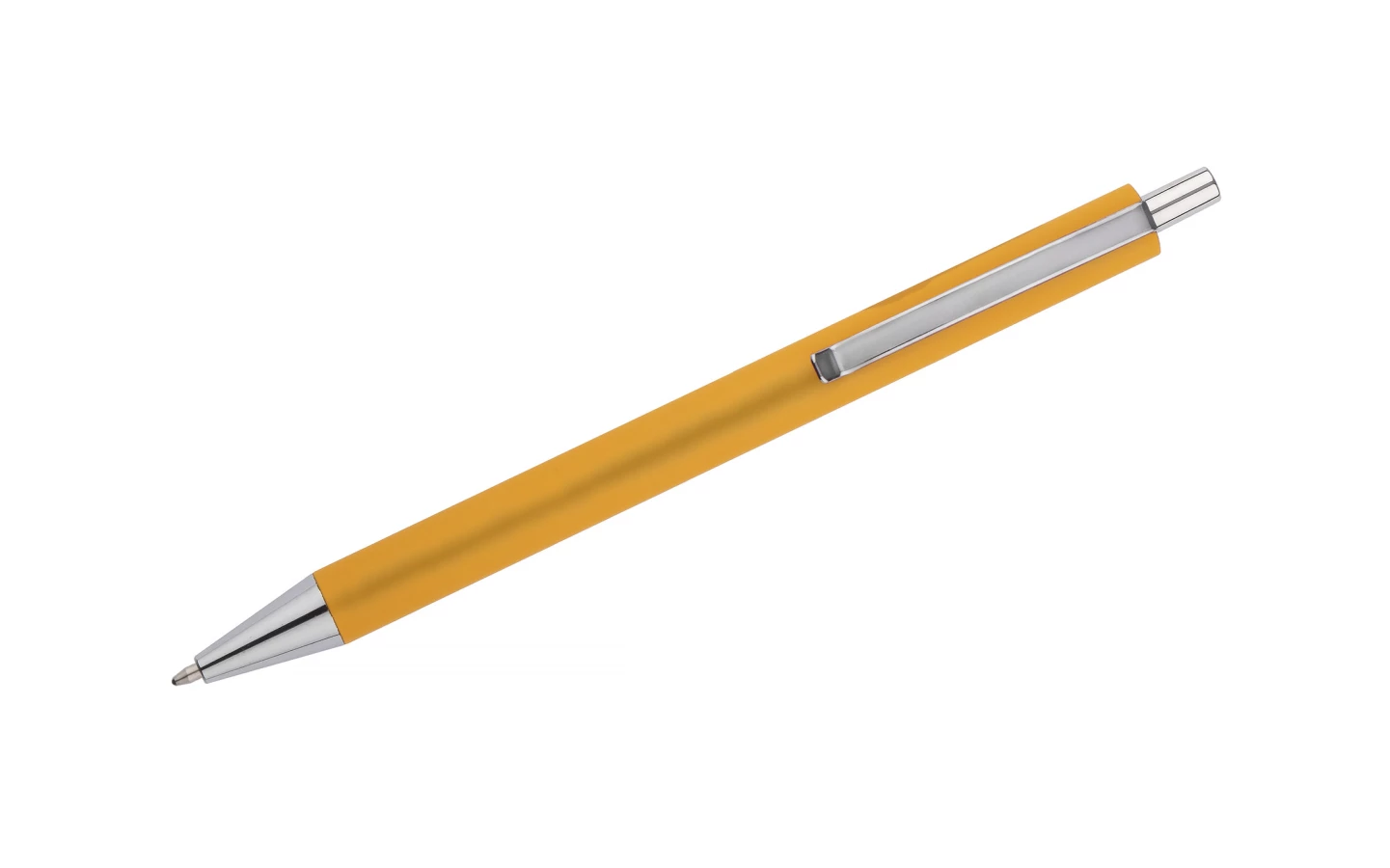 Długopis NOVI wykończony przyjemną w dotyku gumowaną powierzchnią z chromowanymi elemantami w kolorze srebrnym. Wkład w kolorze niebieskim.