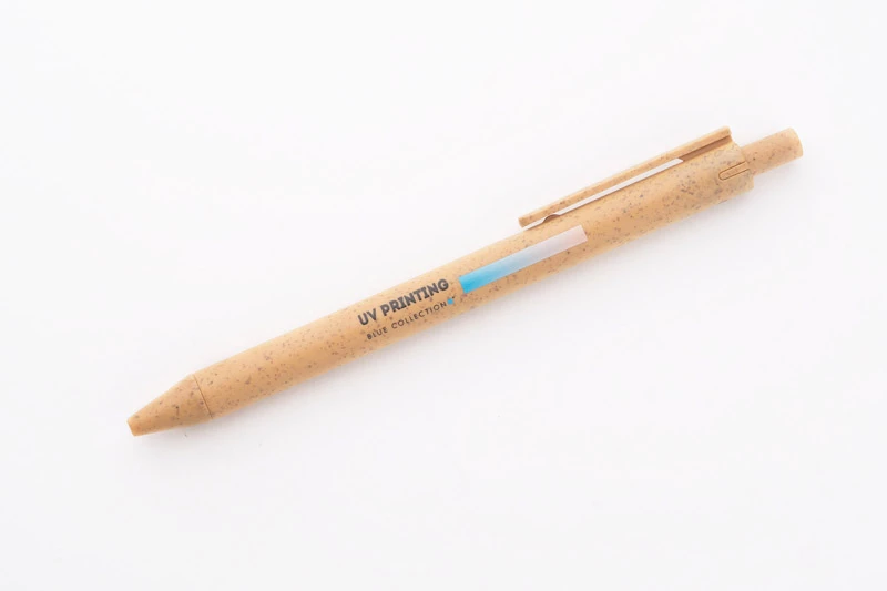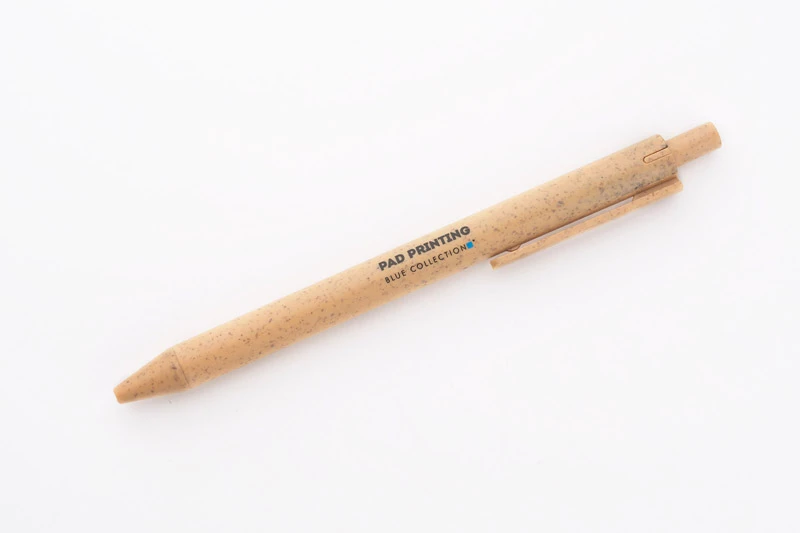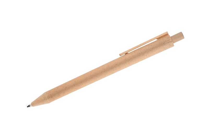 Długopis REVI został wykonany z myślą o wszystkich, którym bliska jest idea redukowania odpadów z tworzywa sztucznego. Tradycyjne tworzywo sztuczne zostało zastąpione specjalnym materiałem wykonanym w 40% z naturalnej słomy. Klasyczny, prosty kształt czyni go uniwersalnym gadżetem. Długopis automatyczny. Wkład typu X20 w kolorze niebieskim.