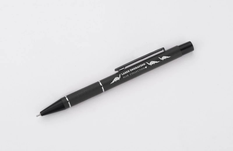 Długopis SATO łączy w sobie niezawodność, piękno i funkcjonalność. Wykonany jest z lekkiego aluminium, a czarne wykończenie nadaje mu elegancji i prestiżu, sprawiając, że doskonale sprawdzi się jako produkt reklamowy w każdej branży. Korpus długopisu został ozdobiony dwoma srebrnymi ringami oraz paskami o delikatnie chropowatej strukturze, dodając mu przyjemnie sensorycznego wymiaru. Wkład z tuszem pół żelowym zapewnia niesamowicie gładkie i płynne pisanie. Grubość linii 0,7 mm pozwoli użytkownikom cieszyć się wyjątkowo precyzyjnymi notatkami, podkreśleniami i listami.