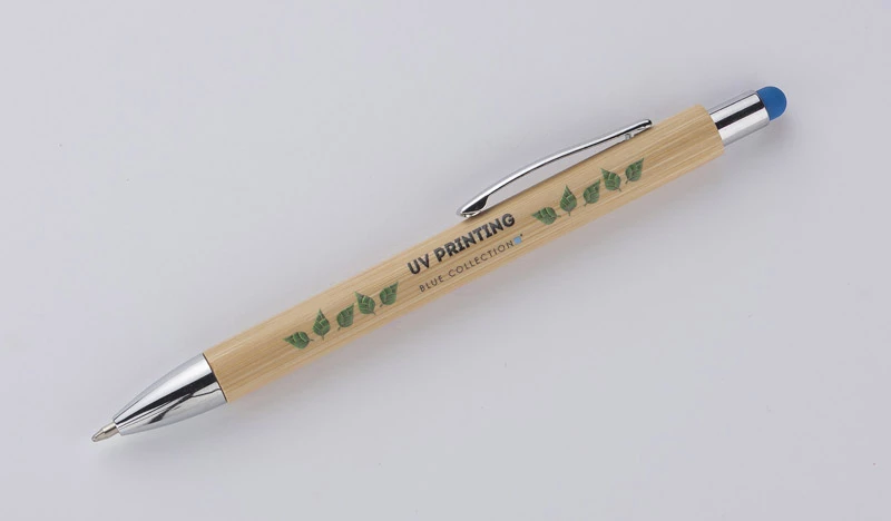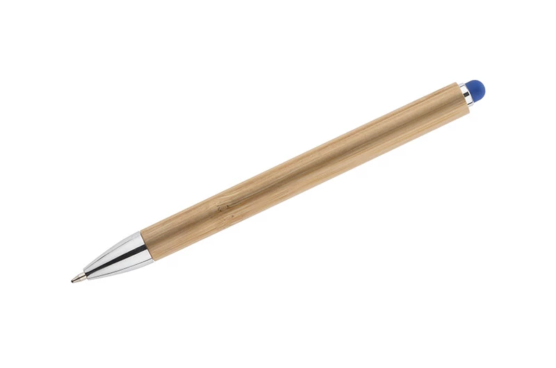 TUSO to długopis, którego korpus został w całości wykonany z bambusa. Chromowane wykończenia nadają mu elegancji. Kolorowa końcówka do obsługi ekranów dotykowych stanowi ciekawą ozdobę. Długopis automatyczny. Wkład typu G2 w kolorze niebieskim.