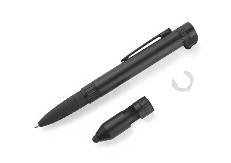 GYVER będzie idealnym podarunkiem dla prawdziwych gadżeciarzy, którzy od upominków reklamowych oczekują zaskakujących funkcji. Ten niepozorny mały przedmiot posiada aż 7 funkcji: długopis, touch pen, stojak do telefonu, latarka, 2 śrubokręty, kompas. Wkład w kolorze niebieskim.