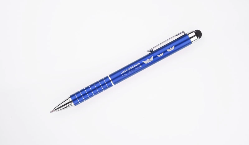 Touch pen i długopis w jednym. Ułatwia pracę na tabletach i smart phone'ach. Wkład długopisu – niebieski. Logo wygrawerujemy na powierzchni długopisu.