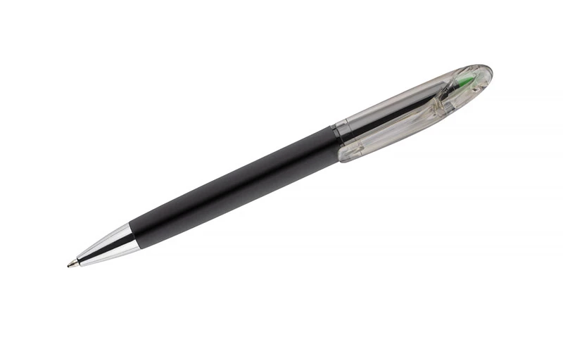 HILIG to dwa przydatne gadżety w jednym. Na górze tradycyjnego długopisu został umieszczony zakreślacz w żywym kolorze. Pokryty gumową powłoką korpus długopisu jest niezwykle przyjemny w dotyku. Długopis z mechanizmem typu twist, wkład długopisu w kolorze niebieskim.