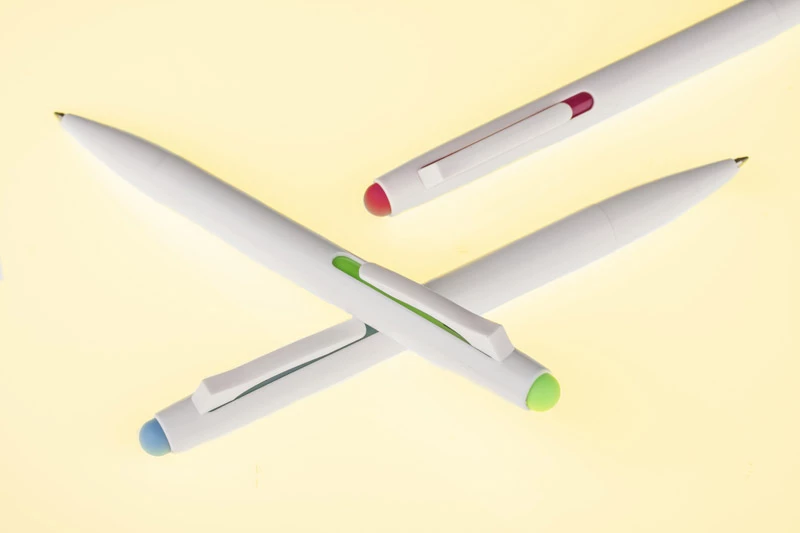 Długopis pozwalający na korektę wszystkich błędów to wymarzony gadżet dla uczniów. Specjalny wkład pozwala na zmazanie napisanego tekstu za pomocą gumki umieszczonej na górze długopisu. MAZZI wykonany jest z tworzywa w białym kolorze z kolorowymi akcentami. Zapakowany w estetyczne etui z papieru. Długopis automatyczny, wkład w kolorze niebieskim.