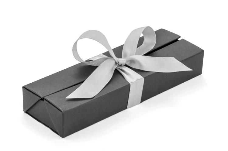 Etui do pakowania artykułów piśmienniczych wykonane z papieru. Zamykane za pomocą wstążki, którą można zawiązać w ozdobną kokardę.