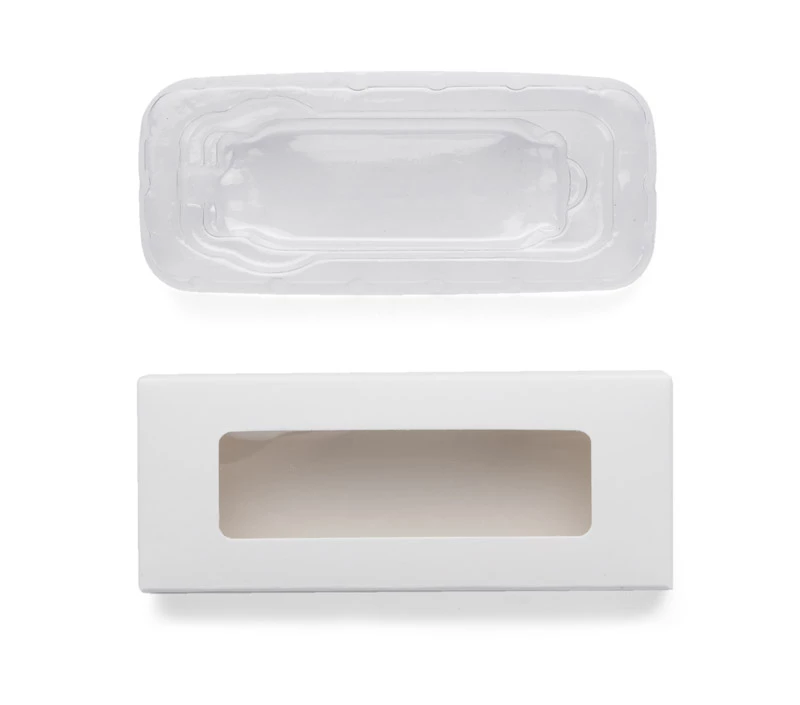 Tekturowe pudełko na pamięć USB, w środku znajduje się duża wytłoczka. Wymiary wgłębienia w wytłoczce: 78 x 25 x 12 mm.