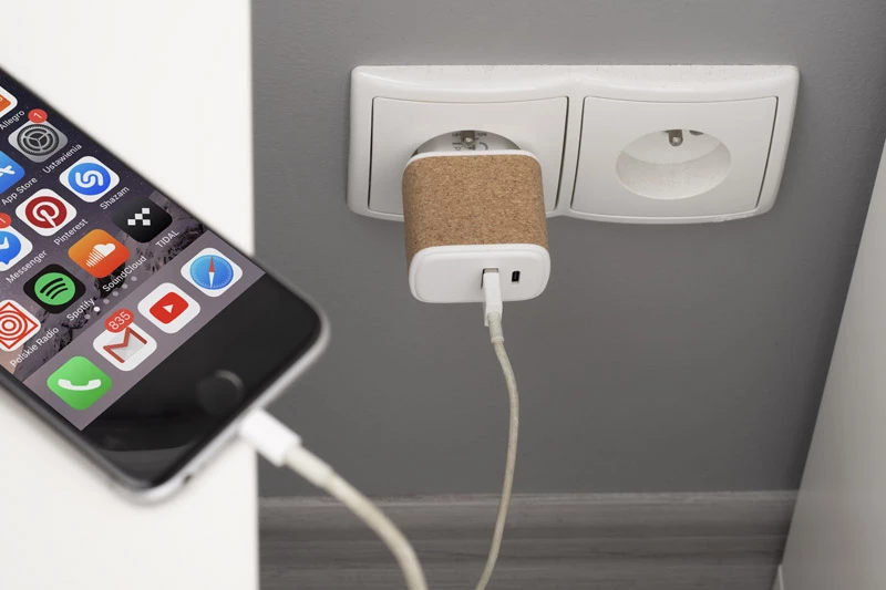 Ładowarka sieciowa BLOSETO to praktyczny gadżet umożliwiający ładowanie urządzeń mobilnych za pomocą wbudowanego portu USB-A i portu typu C. Ładowarka posiada funkcję szybkiego w standardzie QC 3.0. ładowania o mocy 20W. Wykończona jest korkiem dzięki czemu prezentuje się nietuzinkowo.