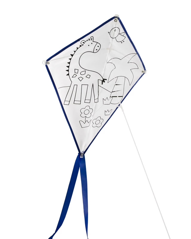Latawiec do samodzielnego montażu zapewni sporą dawkę dobrej zabawy dla całej rodziny. Ozdobiony został nadrukiem, który można pokolorować według własnego pomysłu za pomocą 4 dołączonych pisaków. W zestawie znajdują się metalowe drążki, latawiec, ogon oraz linka o długości 30 metrów nawinięta na uchwyt.