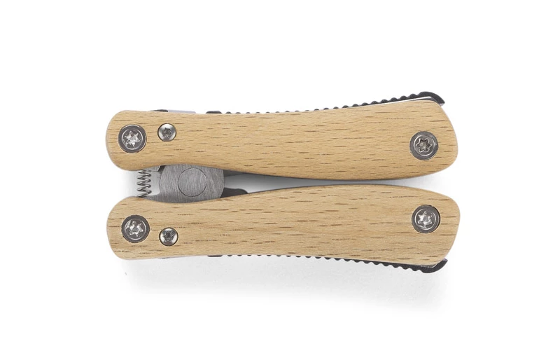 Narzędzie wielofunkcyjne FORT to gadżet w kieszonkowym rozmiarze, wykończony drewnem. Funkcje: kombinerki, przecinak, nóż, śrubokręt płaski i krzyżowy, pilnik, piła, otwieracz do butelek i puszek. W komplecie znajduje się również czarny, materiałowy pokrowiec na narzędzie.