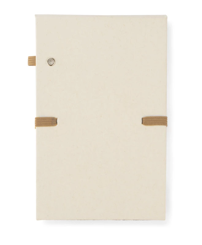Okładka i kartki w notesie zostały wyprodukowane z kartonów po mleku. Okładka zamykana za pomocą elastycznej gumki. Korkowy element dopełnia ten produkt wizualnie, a także umożliwia stworzenie z notesu stojaka na telefon. Notes posiada 80 gładkich kartek.