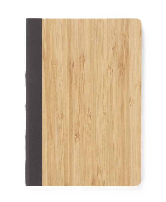 Oryginalny i wyjątkowy notes formatu A5. Okładka wykonana z bambusa zakończona na brzegu brązową taśmą, która stanowi ciekawy i ozdobny element. Kartki w notesie wyprodukowane zostały z papieru kamiennego. Taki papier jest wyjątkowo odporny na rozdarcia oraz na wilgoć. Posiada 80 gładkich kartek. Zapakowany w woreczek biodegradowalny.