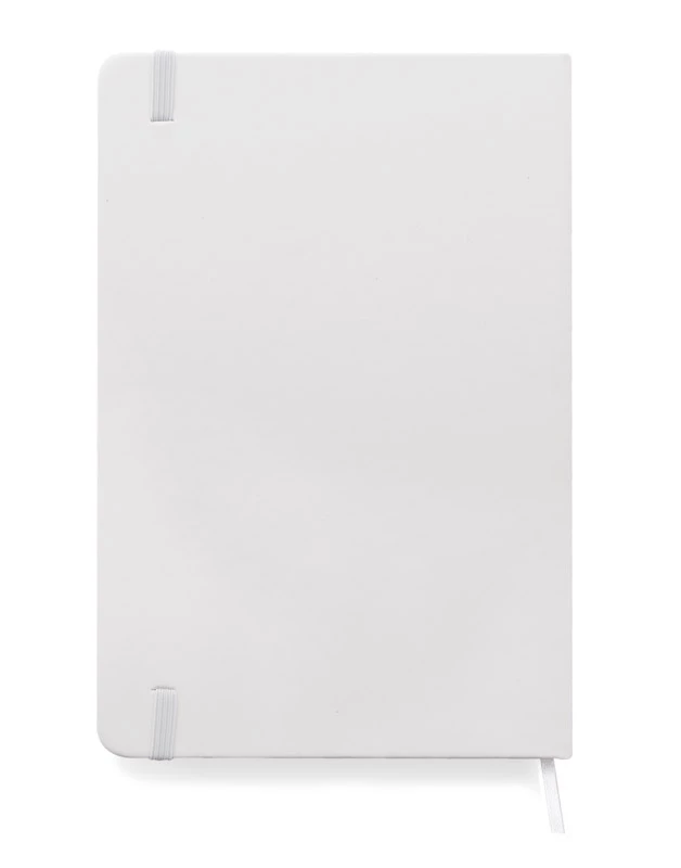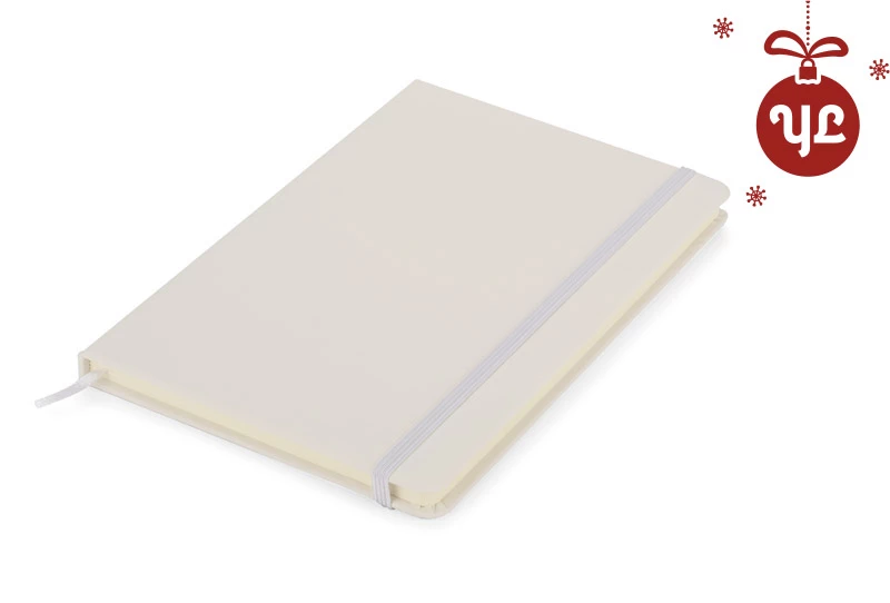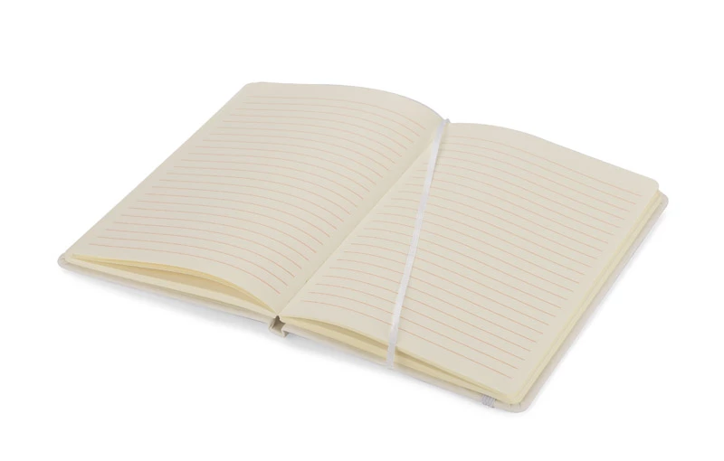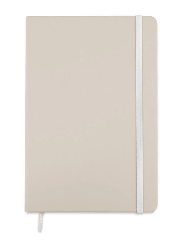 Gustowny notes A5 z kolorową gumką wykonany z materiału skóropodobnego (PU). Notes zawiera 80 kartek ecru w linie koloru pomarańczowego. Logo nadrukujemy na okładce.