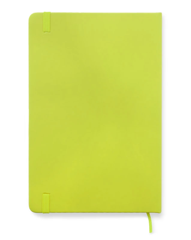 Gustowny notes A5 z kolorową gumką wykonany z materiału skóropodobnego (PU). Notes zawiera 80 kartek ecru w linie koloru pomarańczowego. Logo nadrukujemy na okładce.