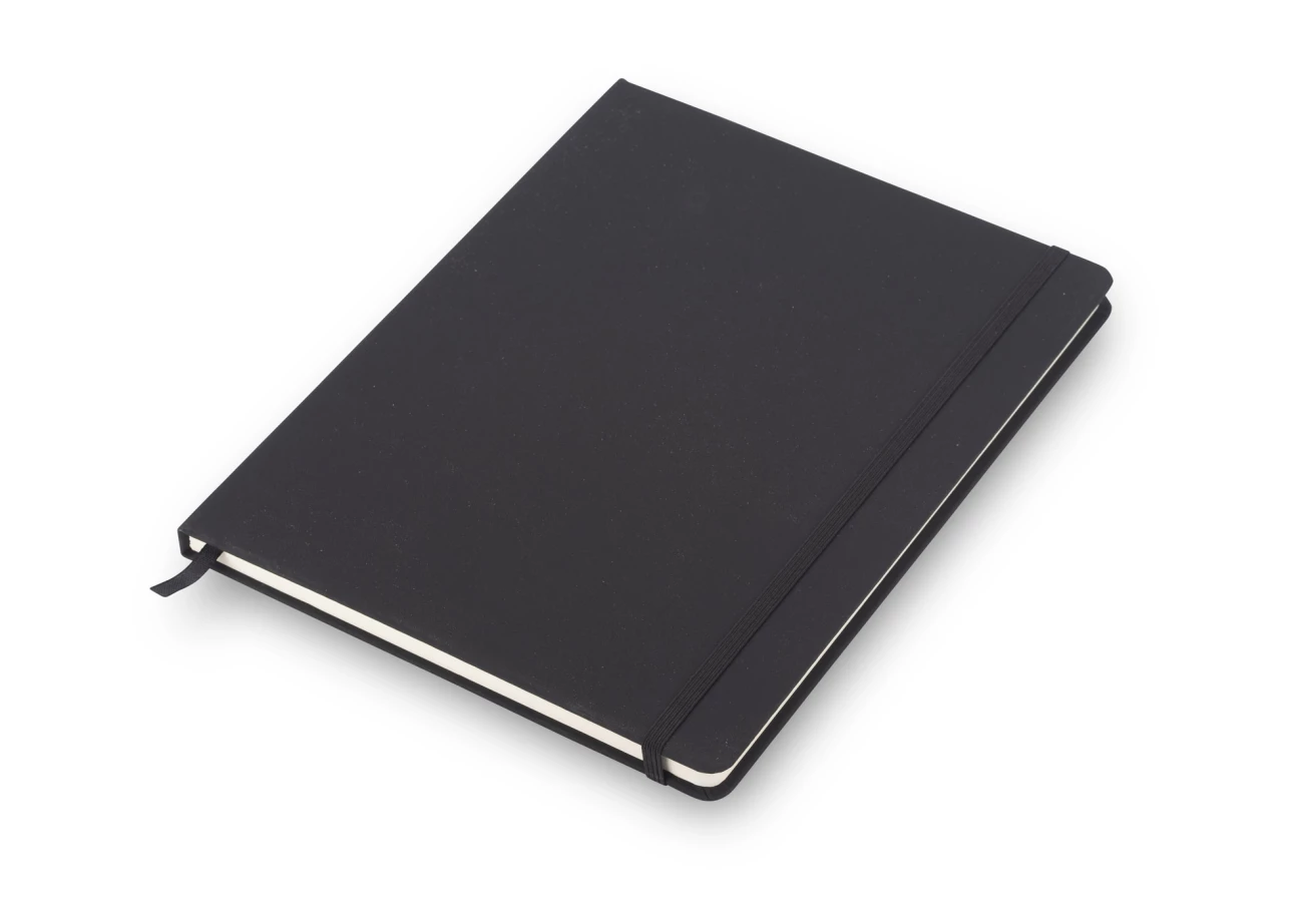 Gustowny notes VITAL B5 z kolorową gumką wykonany z materiału skóropodobnego (PU). Notes zawiera 80 kartek ecru w linie koloru pomarańczowego.