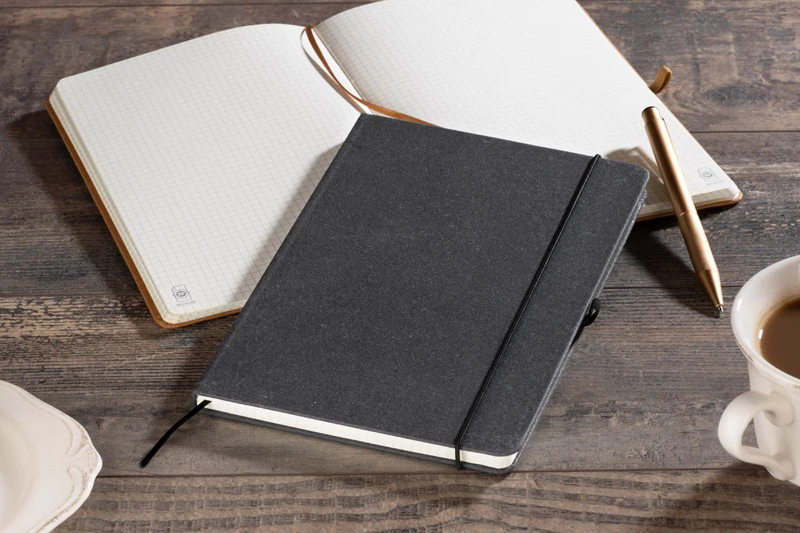 Notes GLITZO posiada 80 recyklingowanych kartek w kratkę, ma kompaktowy format A5 i twardą okładkę wykonaną z recyklingowanego PU. Produkt jest zamykany za pomocą praktycznej gumki, która zapewnia bezpieczeństwo Twoim notatkom, a wstążeczka pełniąca funkcję zakładki, pozwoli Ci z łatwością odnaleźć miejsce, w którym skończyłeś. Dodatkowo, notes posiada miejsce na długopis, co czyni go jeszcze bardziej funkcjonalnym.