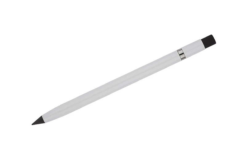 ETERNO to nowy typ ołówka, który zawsze będzie zatemperowany i nigdy się nie wypisze. Tradycyjny grafit został tu zastąpiony specjalnym utwardzonym rysikiem, który daje komfort pisania podobny do świeżo zatemperowanego ołówka. Korpus wykonany z aluminium zapewnia trwałość na lata. Na górze umieszczona gumka do mazania, która bez problemu zetrze notatki wykonane ołówkiem ETERNO (możliwość użycia także innych standardowych gumek). Ołówek wpisuje się w trend eko pozwalający zminimalizować ilość odpadów oraz surowców zużytych do produkcji przedmiotów codziennego użytku. Pakowany w czarne papierowe etui z infografiką z tyłu.
