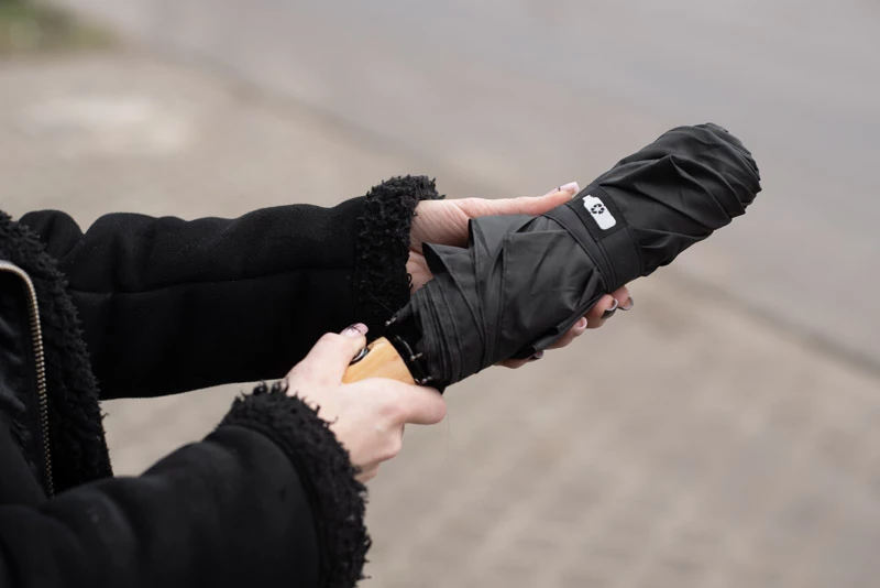 Parasol RALO to stylowe i wygodne rozwiązanie na każdą pogodę. Dzięki automatycznemu mechanizmowi otwierania i zamykania rozkłada się jednym przyciskiem umieszczonym na drewnianej rączce. Czasza z wytrzymałego materiału rPET poliester 190T skutecznie chroni przed deszczem, a stelaż z metalu i włókna szklanego zwiększa odporność na wiatr. Całość dopełnia drewniany guzik na pasku zamykającym, który dodaje parasolowi oryginalnego charakteru. Możliwość znakowania sprawia, że RALO świetnie sprawdzi się jako elegancki gadżet reklamowy.