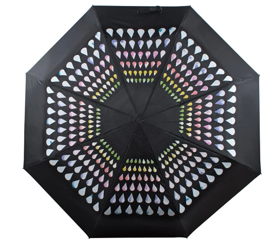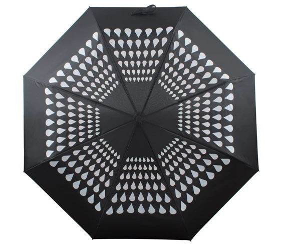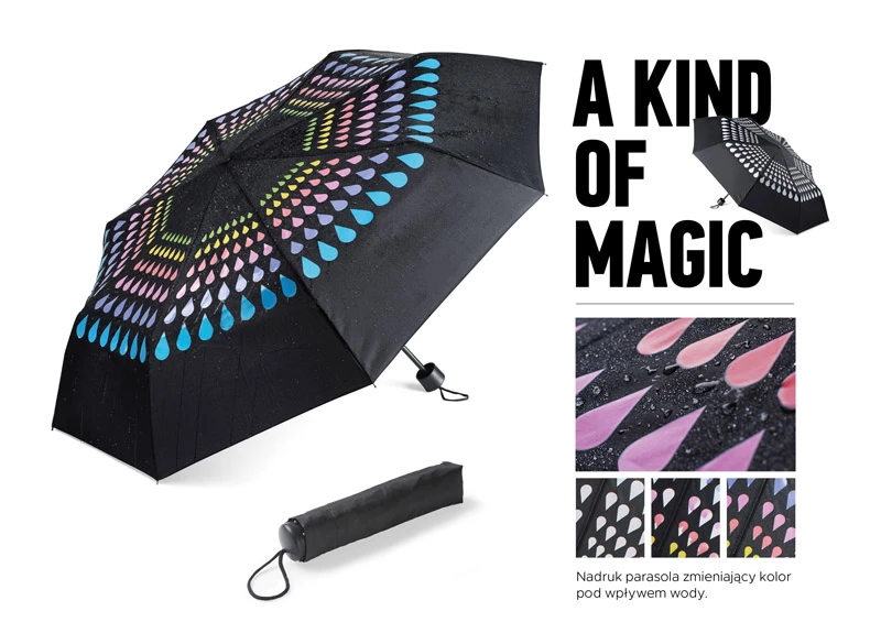 Składany parasol manualny CROPLA to bardzo efektowny gadżet. Posiada zaprojektowany przez grafików Blue Collection nadruk zmieniający kolor pod wpływem wody. Parasol ma metalowy stelaż i jest wykonany z poliestru pongee 190T.