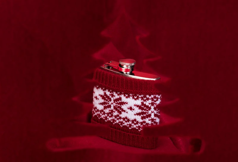 Piersiówka WARM ze stali nierdzewnej o pojemności 200 ml z bezpiecznym zamknięciem. Piersiówka ubrana w sweterek z zimowym wzorem. Doskonały pomysł na upominek.