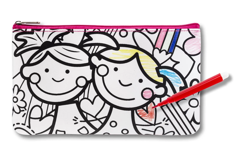 Piórnik ozdobiony grafiką do samodzielnego pokolorowania. Upominek, który potrafi zaangażować i bawić. W zestawie dołączone pisaki w 6 kolorach. Piórnik jednokomorowy zapinany na zamek.