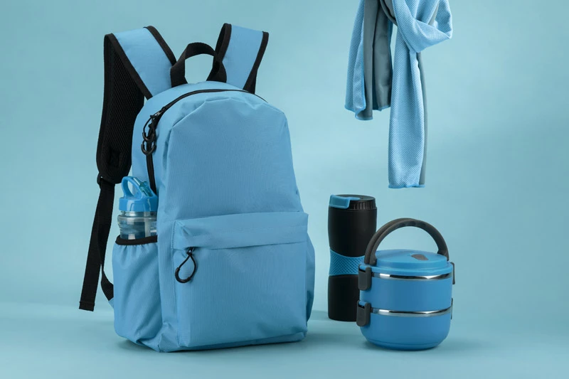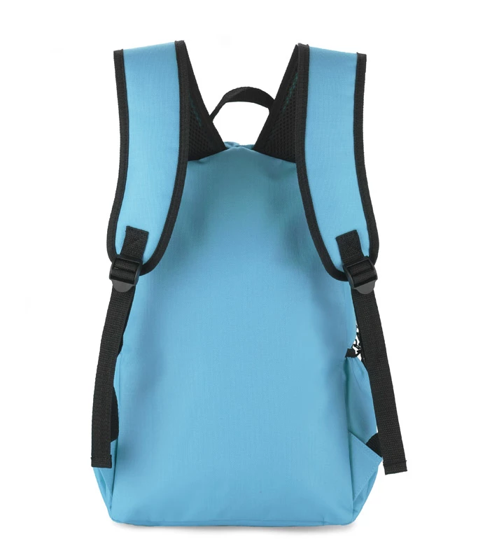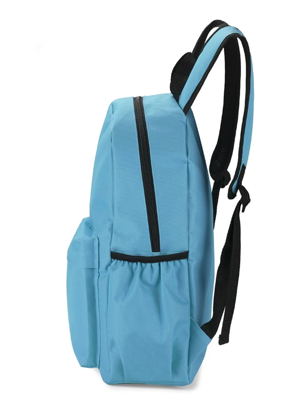 Plecak GINNI wykonany jest z poliestru 600D. Posiada jedną komorę główną zapinaną dwoma suwakami. Z przodu znajduje się spora kieszeń zapinana na zamek, która pomieści potrzebne drobiazgi. Po obu stronach znajdują się otwarte przegrody z gumką mieszczące bidon z wodą. Dno i plecy nie są usztywniane.