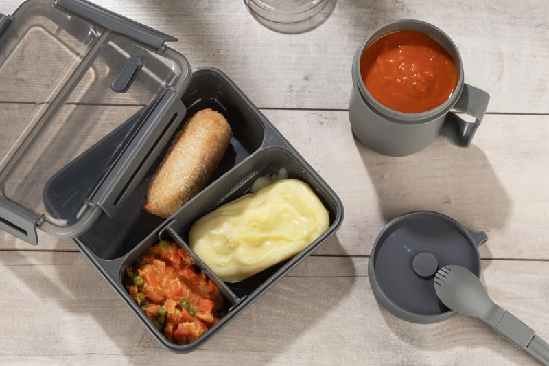 Pojemnik na zupę NODSY to przydatny i praktyczny gadżet. To znakomite rozwiązanie aby zabrać ze sobą zupę na przykład do pracy. Posiada wygodny uchwyt i dołączony składany łyżko-widelec. Pojemnik nadaje się do użycia w kuchenkach mikrofalowych, zmywarkach a także można w nim mrozić. Pojemność 500 ml.