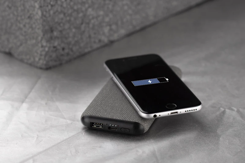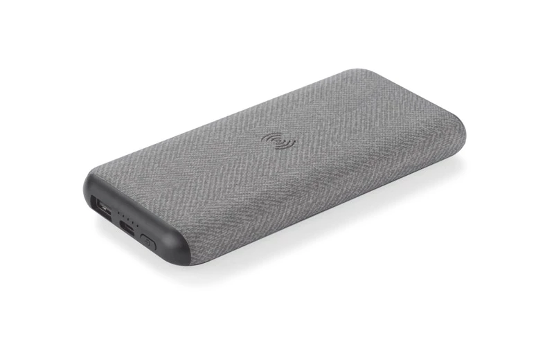 Power bank NARAMA o pojemności 10 000 mAh to nowoczesny gadżet z funkcją ładowania indukcyjnego, umożliwiający bezprzewodowe zasilanie kompatybilnych urządzeń. Z jednej strony wykończony tekstylną tkaniną, z drugiej – gładki, z miejscem na znakowanie, doskonale sprawdza się jako estetyczny nośnik reklamy. Wybierając grawer, zyskujesz efekt podświetlanego logo – subtelne, białe światło LED wyróżnia branding i przyciąga uwagę. Urządzenie wyposażone jest w jeden port USB i obsługuje technologię szybkiego ładowania (2.1 A), co pozwala na sprawne uzupełnianie energii.