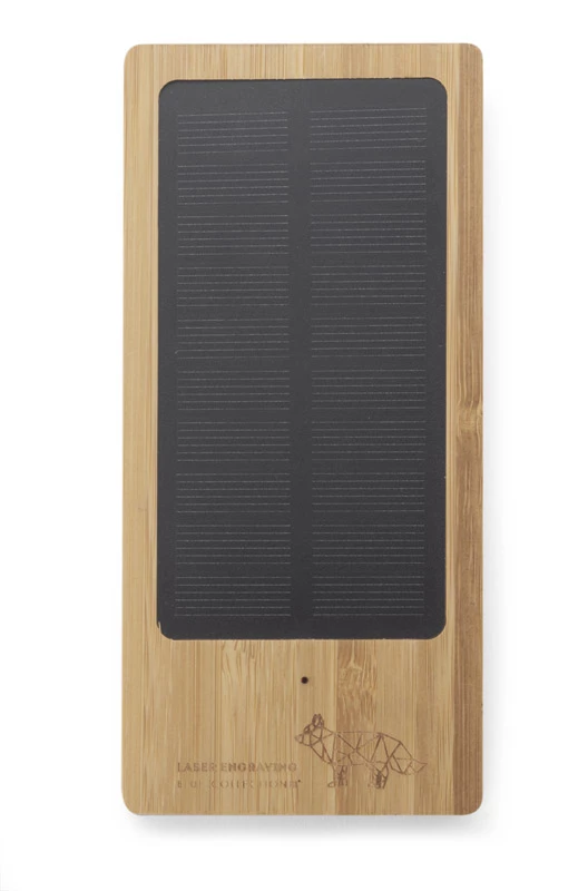 SONNEN to power bank wykonany z ekologicznych upraw bambusa, który wyposażony jest w panel solarny umożliwiający jego naładowanie za pomocą energii słonecznej. Jego duża pojemność 10 000 mAh gwarantuje spory zapas energii dla urządzeń mobilnych, a ekologiczny wygląd odpowiada eko trendom. Power bank posiada diodowy wskaźnik naładowania baterii. W zestawie znajduje się kabel USB do ładowania power banku. Produkt jest zgodny z odpowiednimi dyrektywami Unii Europejskiej, posiada znak CE oraz 1 rok gwarancji. Dane techniczne: wejście (micro USB i USB typu C) 5V/2A (max), wyjście USB 5V/2A (max), bateria litowo-polimerowa.