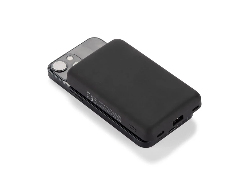 Power Bank VELOCE w eleganckim, matowym czarnym kolorze to Twoje mobilne źródło energii o pojemności 10000 mAh, które zapewnia niezawodne wsparcie w każdej sytuacji. Dzięki funkcji bezprzewodowego ładowania magnetycznego o mocy 5W, zawsze masz pewność, że Twoje urządzenie jest naładowane. Wyjście typu C umożliwia szybkie ładowanie zgodnych urządzeń, co sprawia, że VELOCE staje się nieodłącznym towarzyszem podróży. Dodatkowo, skorzystaj z usługi znakowania, aby umieścić na power banku podświetlane logo Twojego klienta, nadając mu wyjątkowy, personalizowany charakter. VELOCE to połączenie nowoczesności, wydajności i stylu, które sprawia, że zawsze jesteś gotowy na każde wyzwanie. Wybierz niezawodność i elegancję – wybierz VELOCE.