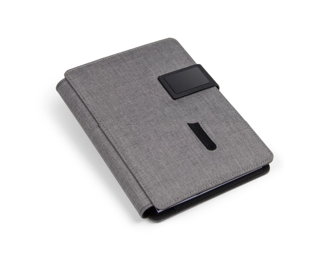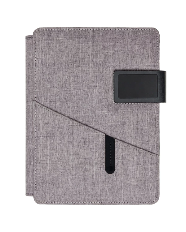 Wykonane z lnu zewnętrzne pokrycie teczki CARLIS posiada dwie kieszonki na telefon i pamięć USB. W środku znajduje się wymienny notes A5 (50 kartek w linie), duża kieszeń zamykana na zamek, miejsce na długopis oraz 4 małe kieszonki w tym 1 z okienkiem. Teczka zamykana jest za pomocą magnetycznego zatrzasku. Umieszczona na zatrzasku metalowa płytka pozwala na wykonanie efektownego grawerowania, który z pewnością podkreśli elegancki charakter teczki.